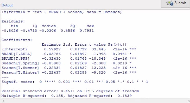 When running a regression on a sales impact on demand, we noticed that the model had a very low R-Squared. The variables came back significant, but not the model could be stronger. When adding dummy variables, the model again had a low R squared, but the variables again were significant at a 95% confidence interval. The low R-squared is something to note and account for when analyzing data.